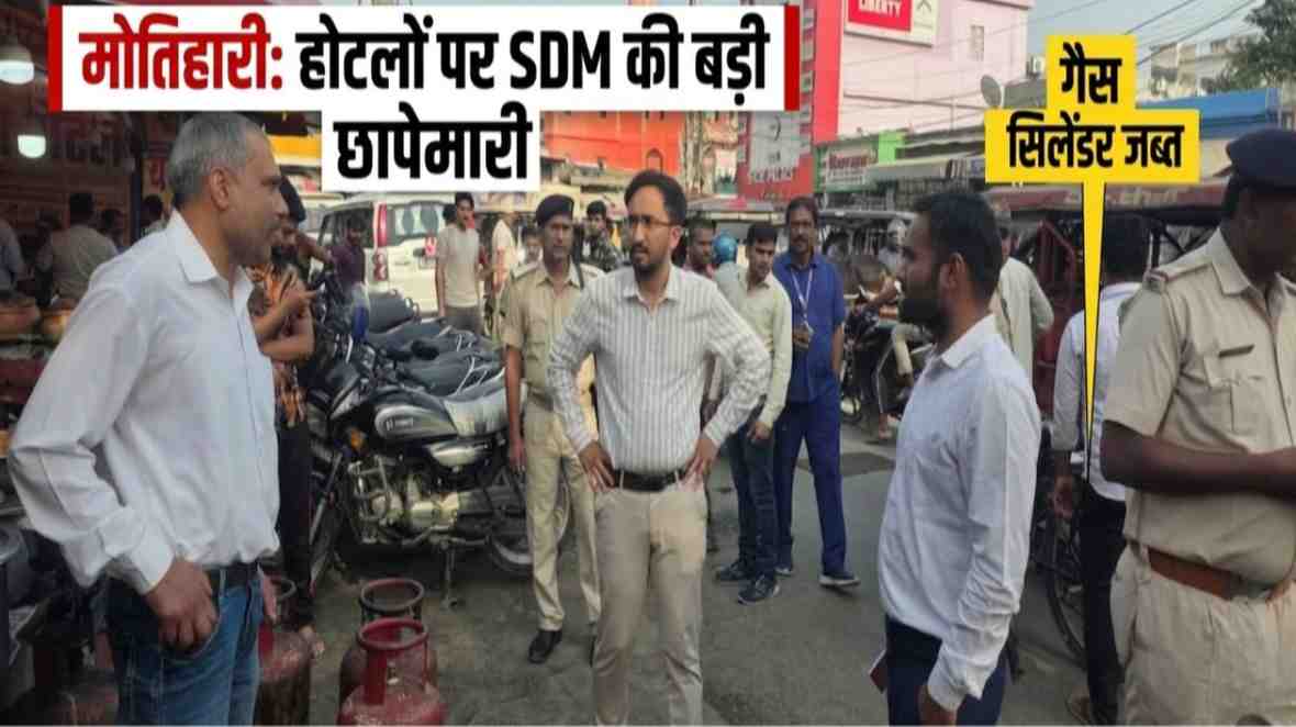 बिहार के मोतिहारी में घरेलू गैस सिलेंडरों का व्यवसायिक (Commercial) इस्तेमाल करने वालों के खिलाफ प्रशासन ने बड़ी कार्रवाई शुरू कर दी है। सदर अनुमंडल पदाधिकारी (SDO) श्री निशांत सिहारा और प्रखंड आपूर्ति पदाधिकारी श्री कृष्णकांत ने मोतिहारी के गांधी चौक स्थित जमुना होटल सहित अन्य होटलों में औचक निरीक्षण किया।